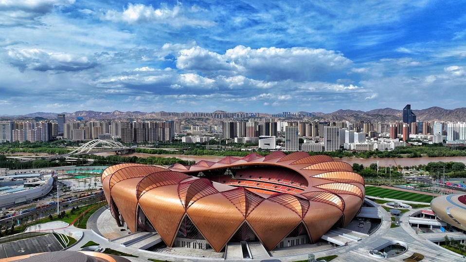 由中國十七冶承建的蘭州奧體中心,采用“飛天花舞”設(shè)計(jì)理念,建筑猶如五朵花舞動(dòng)于絲綢之路上,總建筑面積46.6萬平方米,由60000座玫瑰體育場、8000座郁金香綜合館、3000座百合游泳館、3000座荷花網(wǎng)球館、蘭花運(yùn)動(dòng)員公寓等單體組成。其中郁金香綜合館弦支穹頂是世界上首個(gè)吊掛大噸位斗形屏(40t)的矢跨比小于1/12的90米級大跨度弦支穹頂結(jié)構(gòu)工程。